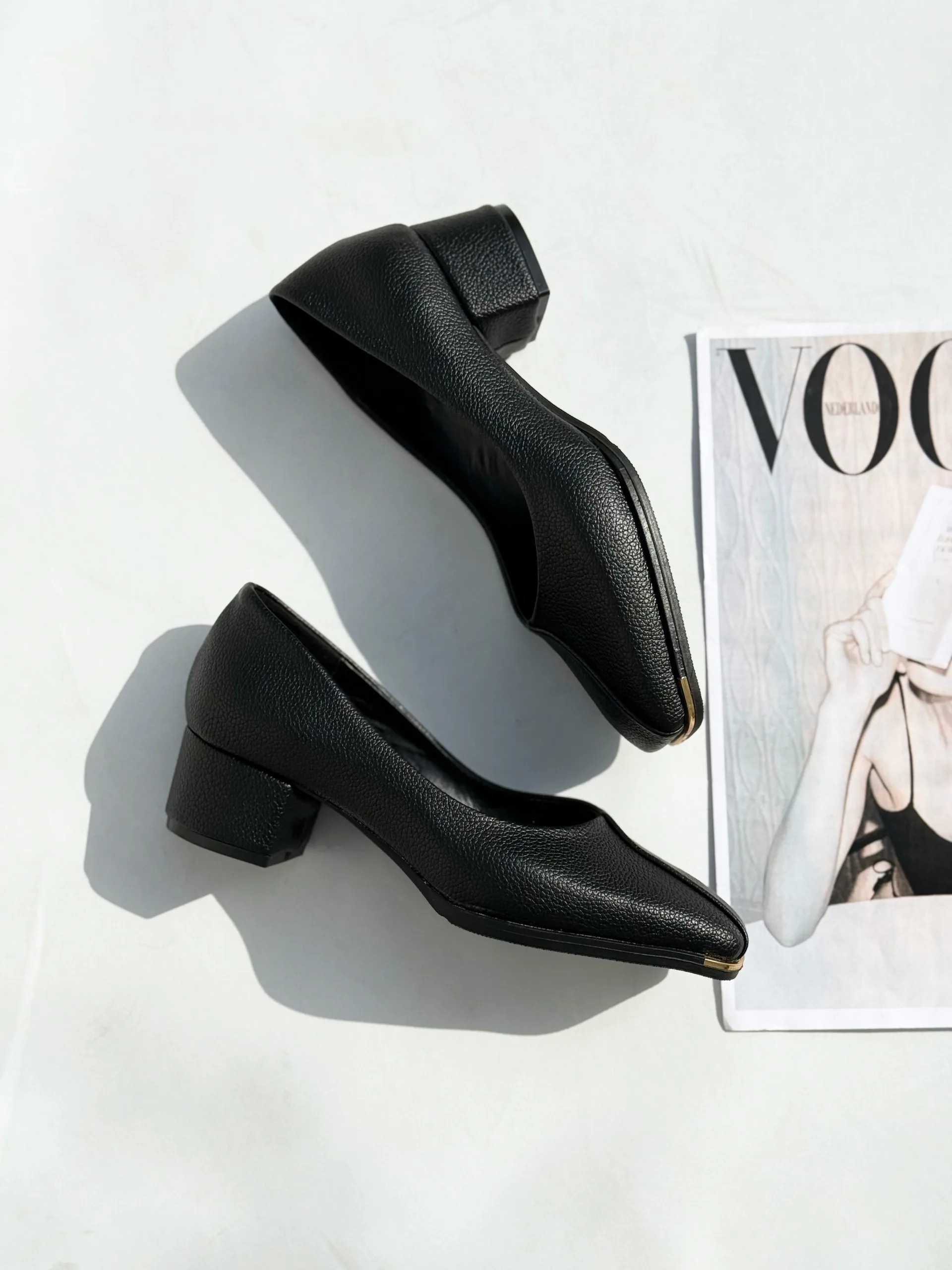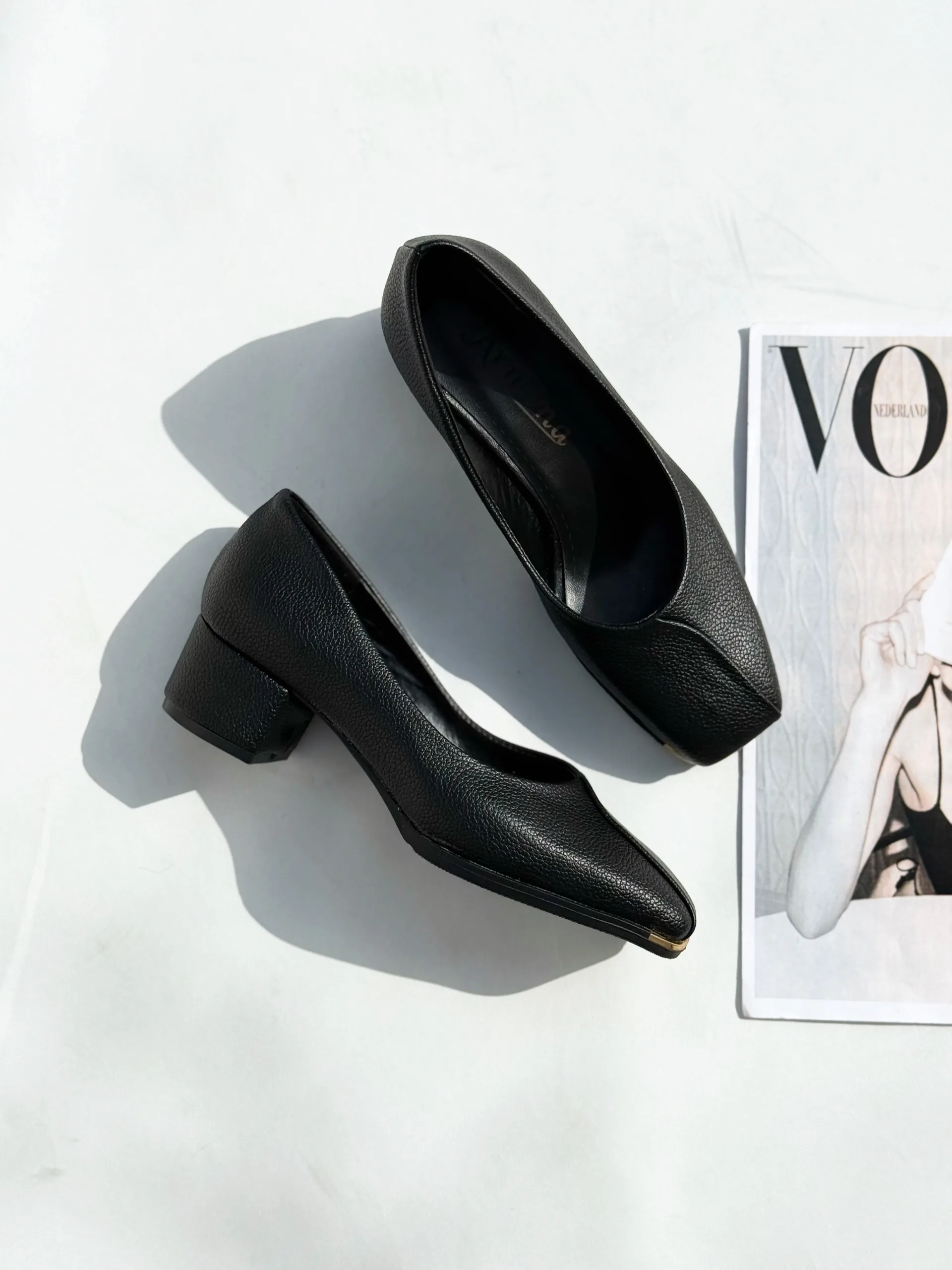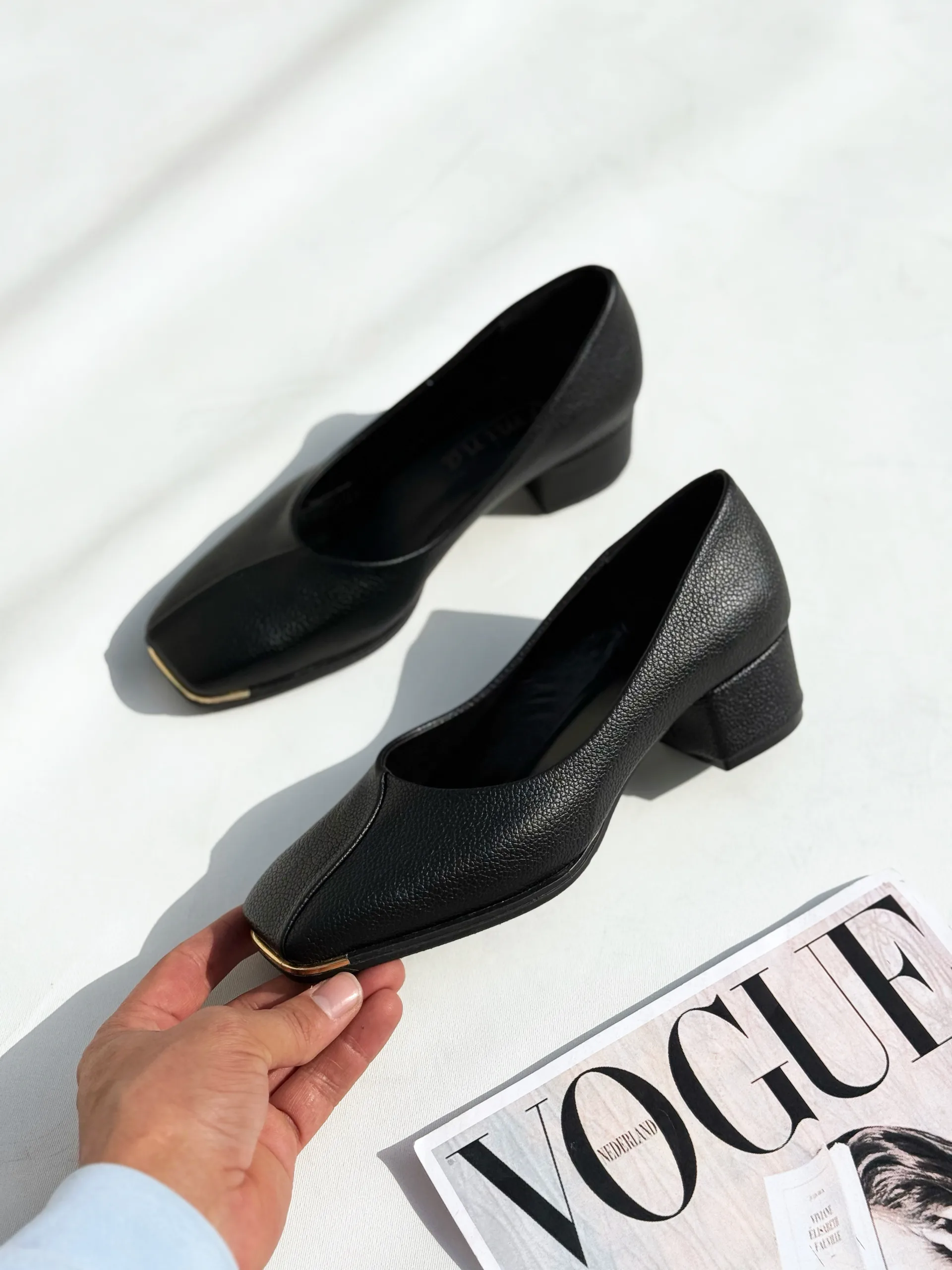 کفش زنانه پنجه طلا پاشنه سه سانت