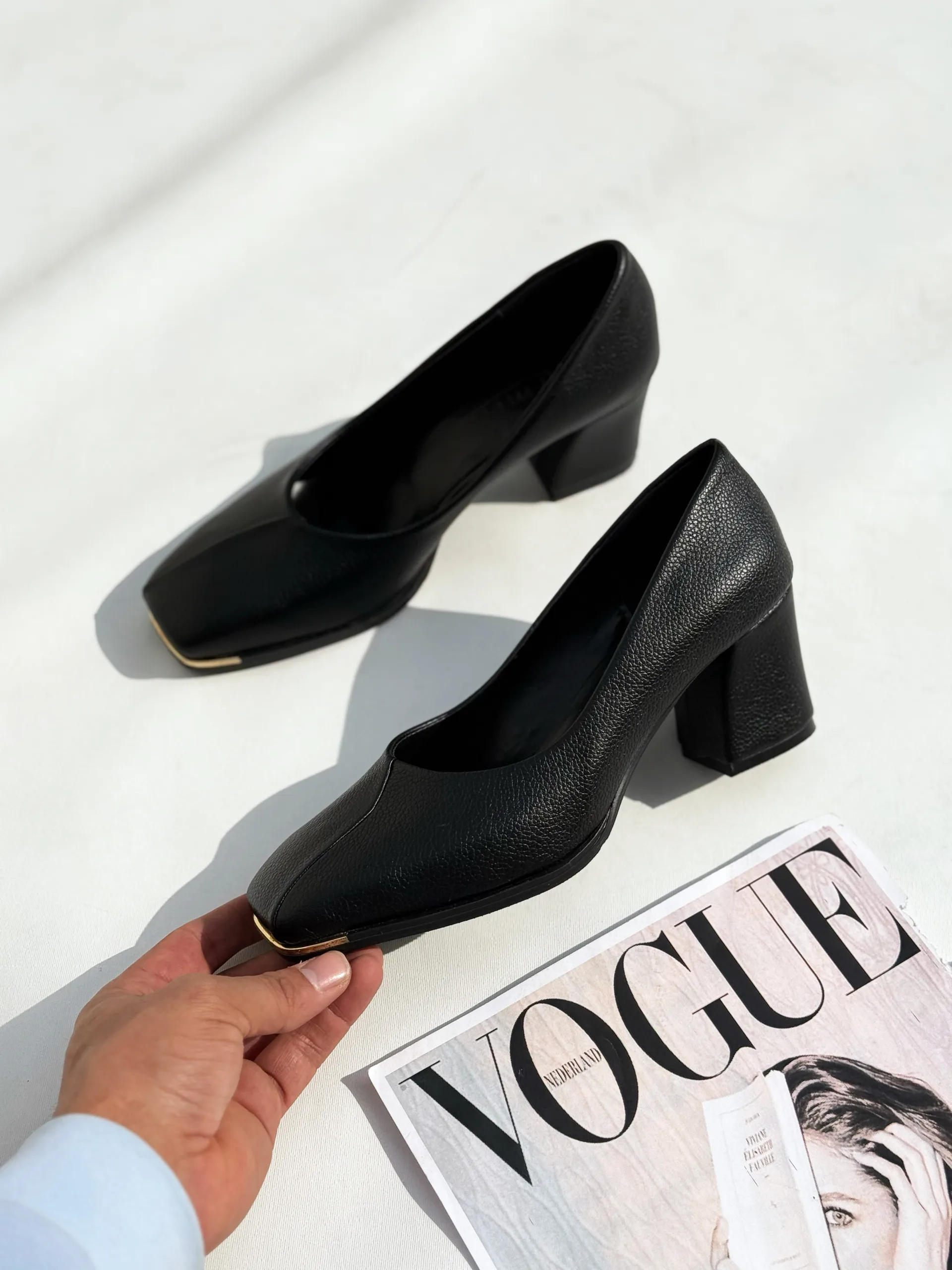 کفش زنانه پنجه طلا پاشنه شیش سانت
